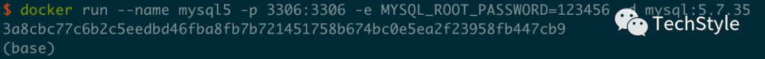 docker run --name mysql5 -p 3306:3306 -e MYSQL_ROOT_PASSWORD=123456 -d mysql:5.7.35
