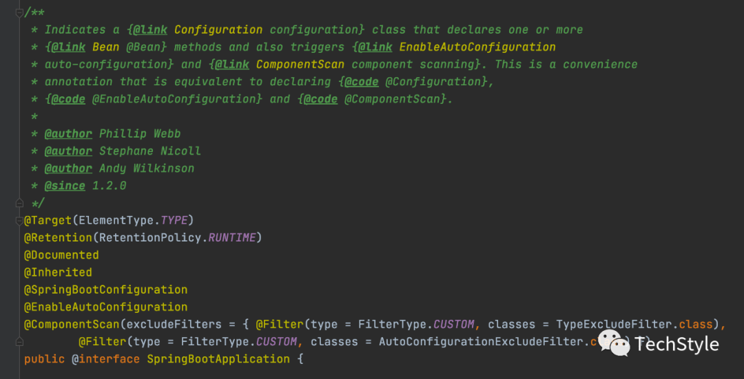 @SpringBootApplicationpublic class Application {public static void main(String[] args) {SpringApplication.run(Application.class, args);}}