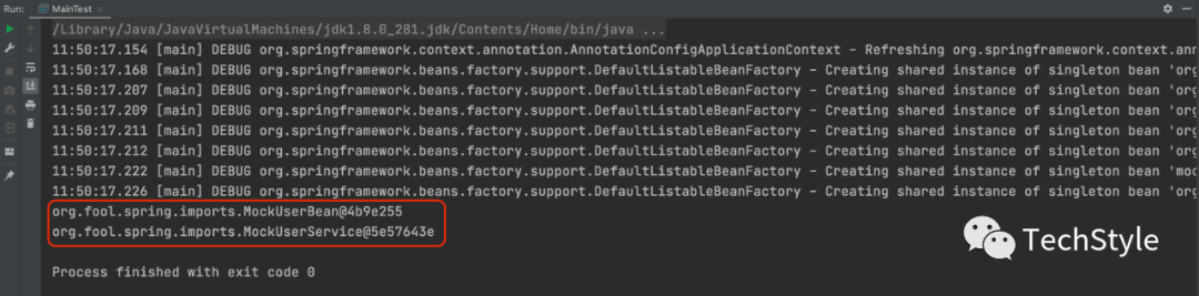 package org.fool.spring.imports;import org.springframework.context.ApplicationContext;import org.springframework.context.annotation.AnnotationConfigApplicationContext;public class MainTest {public static void main(String[] args) {ApplicationContext context = new AnnotationConfigApplicationContext(MockUserService.class);MockUserBean mockUserBean = context.getBean(MockUserBean.class);MockUserService mockUserService = context.getBean(MockUserService.class);System.out.println(mockUserBean);System.out.println(mockUserService);}}