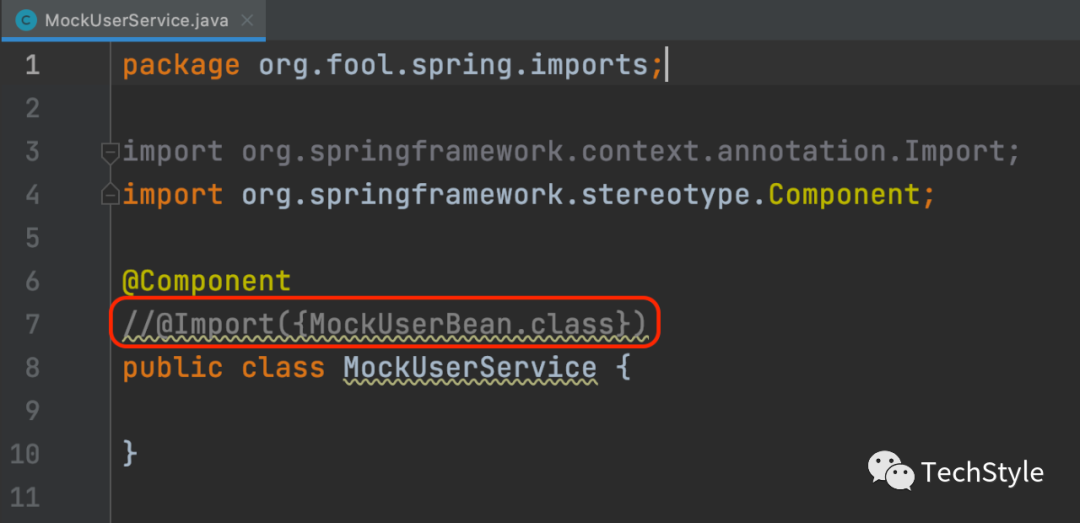 package org.fool.spring.imports;import org.springframework.context.annotation.Import;import org.springframework.stereotype.Component;@Component@Import({MockUserBean.class})public class MockUserService {}