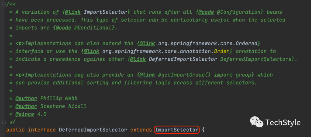 Note: 可以看到DeferredImportSelector 继承了 ImportSelector 接口