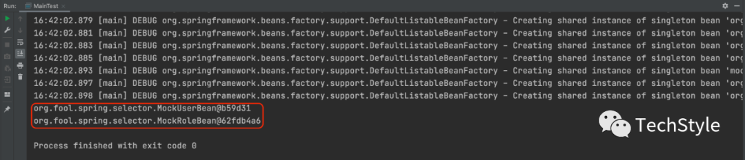 package org.fool.spring.selector;import org.springframework.context.ApplicationContext;import org.springframework.context.annotation.AnnotationConfigApplicationContext;public class MainTest {public static void main(String[] args) {ApplicationContext context = new AnnotationConfigApplicationContext(MockConfig.class);MockUserBean mockUserBean = context.getBean(MockUserBean.class);MockRoleBean mockRoleBean = context.getBean(MockRoleBean.class);System.out.println(mockUserBean);System.out.println(mockRoleBean);}}