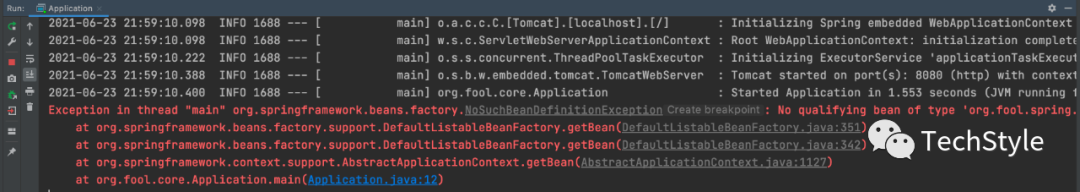 package org.fool.core;import org.fool.spring.factory.App;import org.springframework.boot.SpringApplication;import org.springframework.boot.autoconfigure.SpringBootApplication;import org.springframework.context.ConfigurableApplicationContext;@SpringBootApplicationpublic class Application {public static void main(String[] args) {ConfigurableApplicationContext context = SpringApplication.run(Application.class, args);App app = context.getBean(App.class);System.out.println(app.info());}}
