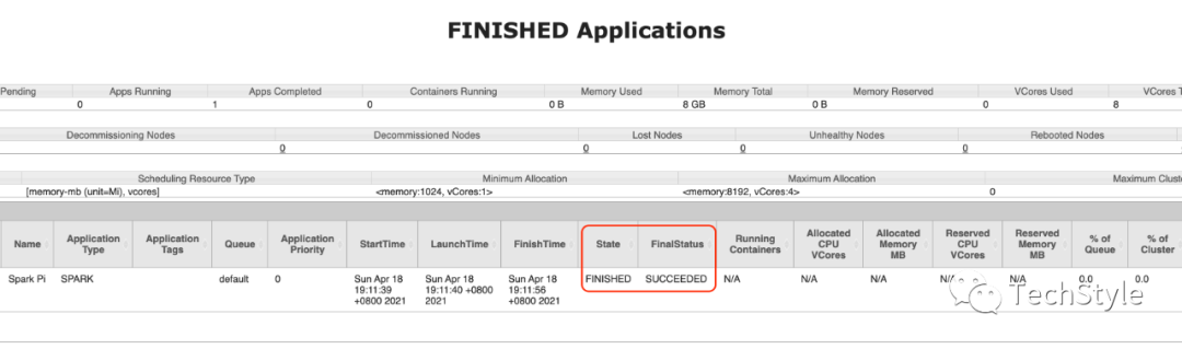 cd $SPARK_HOMEbin/spark-submit --class org.apache.spark.examples.SparkPi --master yarn examples/jars/spark-examples_2.12-3.1.1.jar