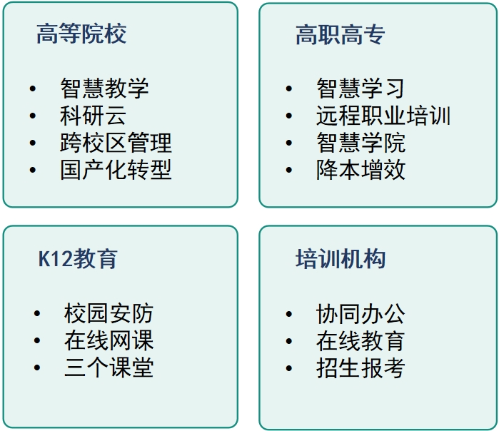 ● 为校园打造零死角的云安全防护体系,提供预防、防御、检测、响应等四大场景化部署,符合等保2.0要求;