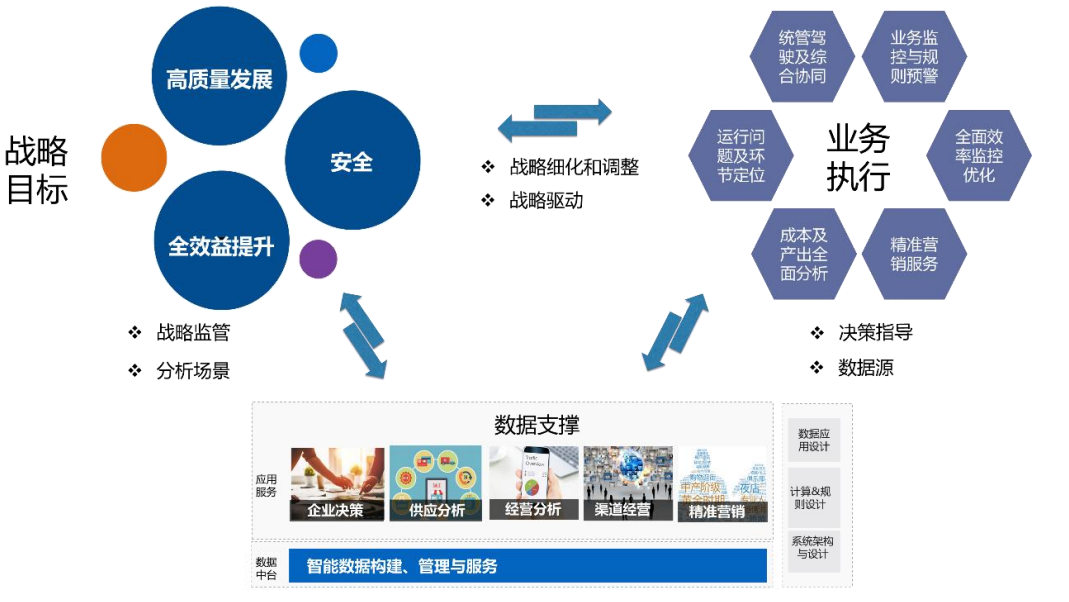 通过大数据挖掘,优化人、财、物等关键管理要素全流程管理体系,以数据治理牵引其他业务数据质量提升,推动业财融合和数据共享互联,形成对企业业务的全局把控,以数据驱动业务,为企业提供相关数据分析和智能决策模型。