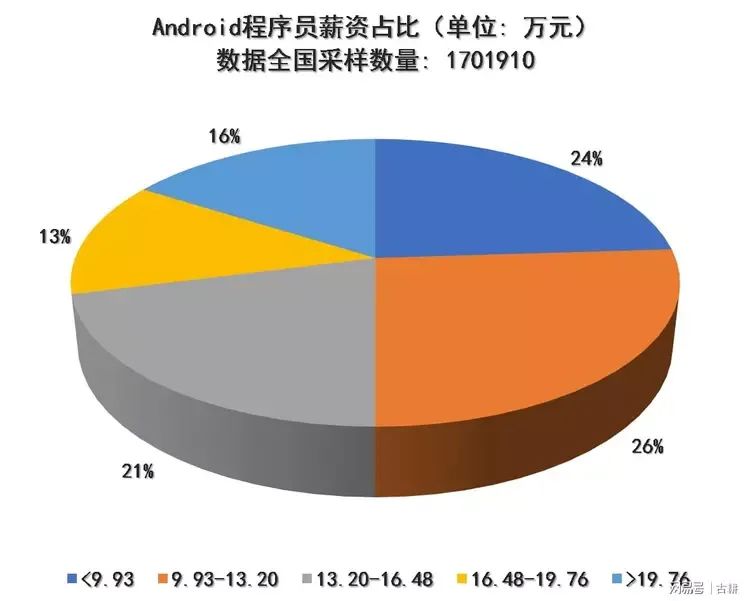 下面,是笔者从招聘网站上获得的,关于各种程序员、不同薪资区间的占比情况: