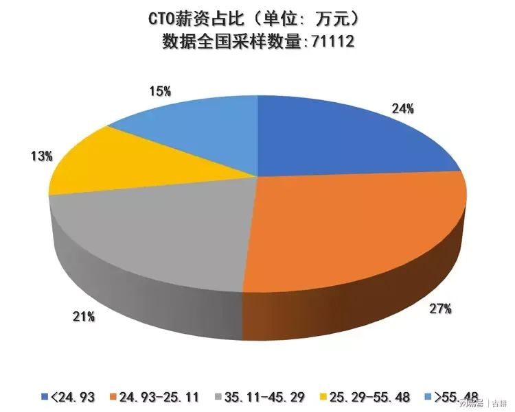 所以,既然普通程序员看起来好像很难达到年薪50万,笔者就去查了关于技术管理者的薪资分布情况,分别以技术经理、技术总监、CTO三种技术管理作为查询条件,最终得到如下结果,是以年薪为单位的三种技术管理者的薪资区间占比情况: