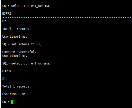 可见,U1用户登录进库后,可不带模式访问到U1模式下的表,却不能访问其他模式下的表,说明当前会话窗口的默认模式是U1。
