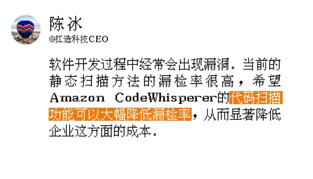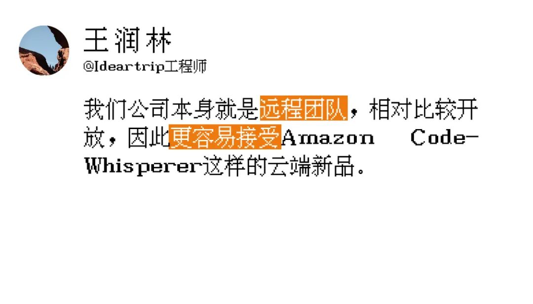 在“开发者之声”访谈中,20 余家公司的研发 1 号位、技术管理者从自身经验出发,畅谈了他们使用 Amazon CodeWhisperer 工具改变开发工作方式的体验、收获和期待。