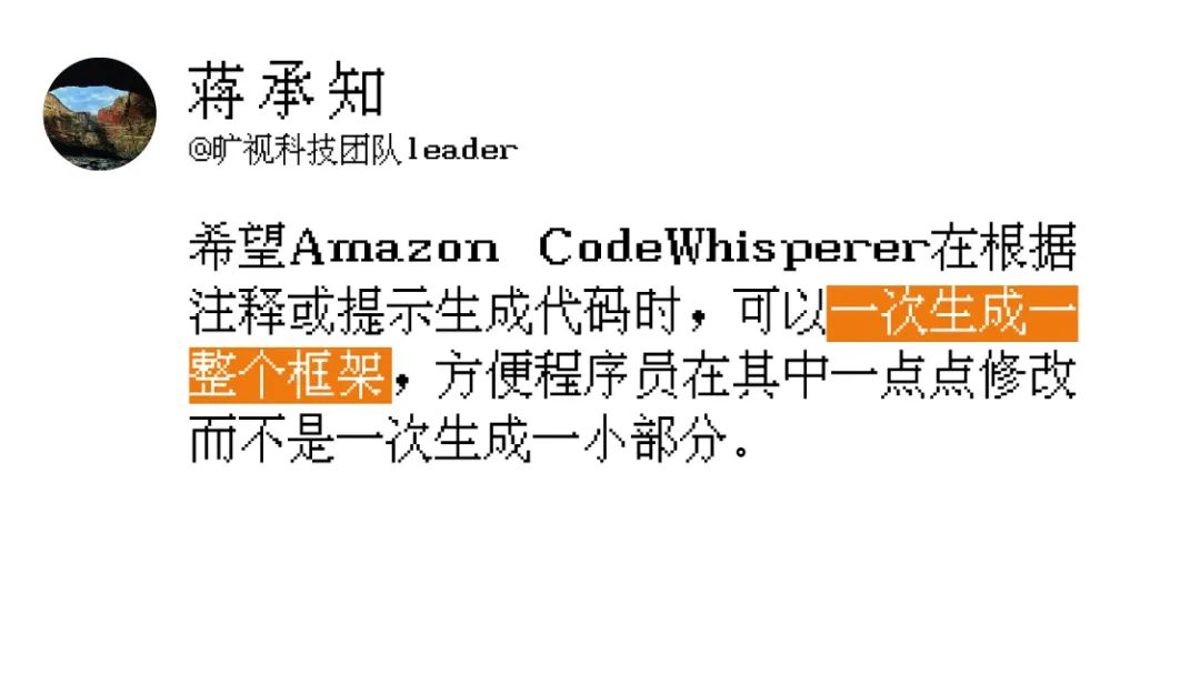 在这次访谈中,工程师们对 Amazon CodeWhisperer 以及其他编程辅助工具的未来前景表现出了极大的期望。