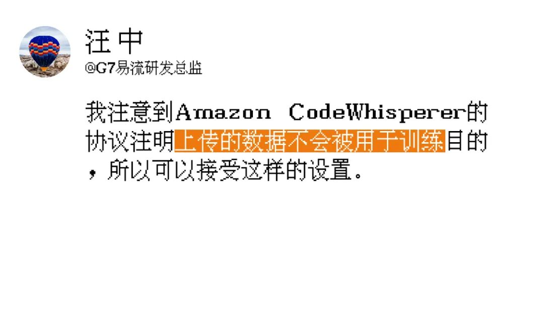通过与二十位具有丰富开发经验并在公司和团队中担任管理职务的嘉宾的访谈,可以看出,当前的软件行业对于 AI 辅助编程技术的态度仍然处于初步探索的阶段。然而,即便如此,一线开发人员仍然怀有极大的期望,期待像 Amazon CodeWhisperer 这样的服务在不久的将来能够满足他们的日常需求,显著提升开发流程中各个环节的生产效率。特别是对于那些有丰富经验的从业者来说,他们更加重视和期待编程辅助工具在企业生产力、团队协作能力以及开发人员职业生涯成长等方面产生的广泛影响。另一方面,虽然仍有很多用户对云端服务的安全性表示担忧,但也有不少企业开始认可这种解决方案,选择信任云厂商所提供的安全与隐私保障。