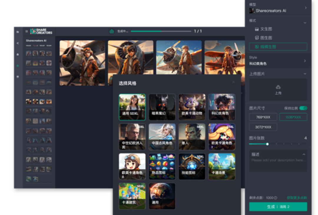 基于亚马逊云科技一系列的解决方案,Share Creators 在1个月内成功研发并上线了生成式 AI 功能,不仅帮助用户提高了创作效率,还能够满足其多样化的 AI 生图需求,例如 2D 原画的风格探索等。现今,无论企业、团队或是个人,无论是远程办公还是集中办公,都可以通过 Share Creators 数字资产管理系统盘活并应用内部已经沉淀的大量数字资产,提升企业内部、企业间的集成与协同,进而达到效率与价值的双提升。