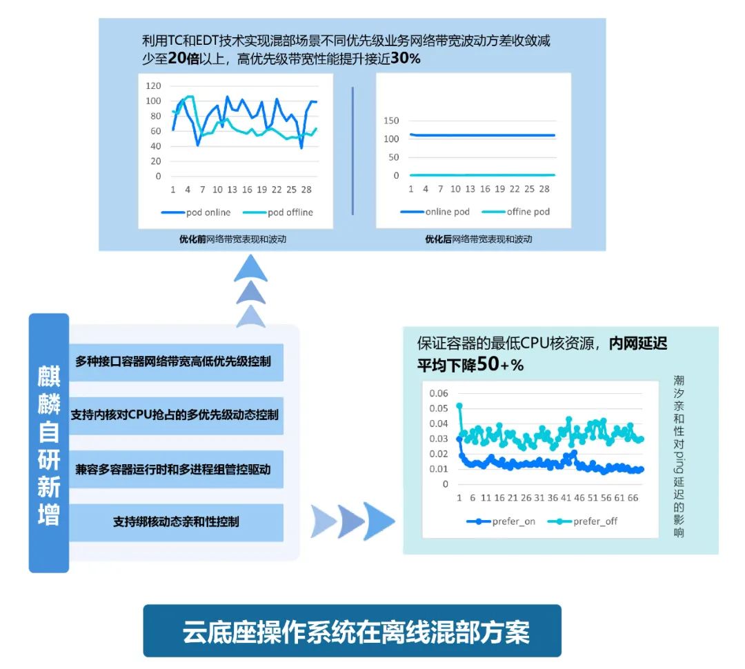 银河麒麟云底座操作系统V10以独立的内核研发能力及先进技术商业实践为基础,吸收openEuler等主流社区云宿主机场景技术特性,并对云计算专项优化,增强在离线混部技术、优化分布式存储方案、持续扩大eBPF应用范围等,充分提升云资源利用率;同时广泛兼容国产计算底座,充分发挥国产算力资源。