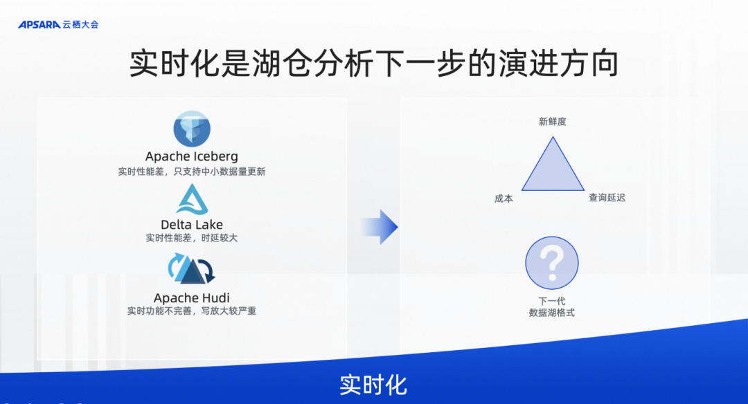 Hudi 的初衷是为了解决这个问题,实现实时化的数据湖格式,提升实时更新,加速数据湖的时效性。但是,目前从架构设计和工程实现效果来看,并没有达到预期,很多客户在使用 Hudi 过程中也踩了很多坑,无论是系统稳定性还是系统的运维复杂度上都面临非常大的挑战。