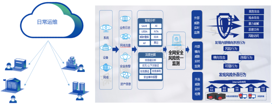 建立安全风险感知系统:实时对办公网络全网(涉及中心及下属单位)进行安全检测分析,确保全面了解当前安全态势。