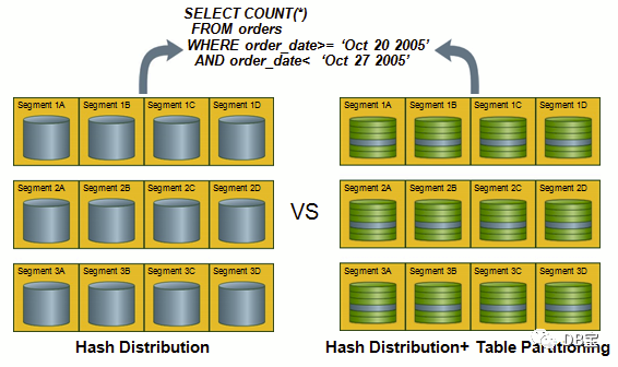 表分布是物理的:Greenplum数据库会在物理上把分区表和未分区表划分到多个Segment上来启用并行查询处理。