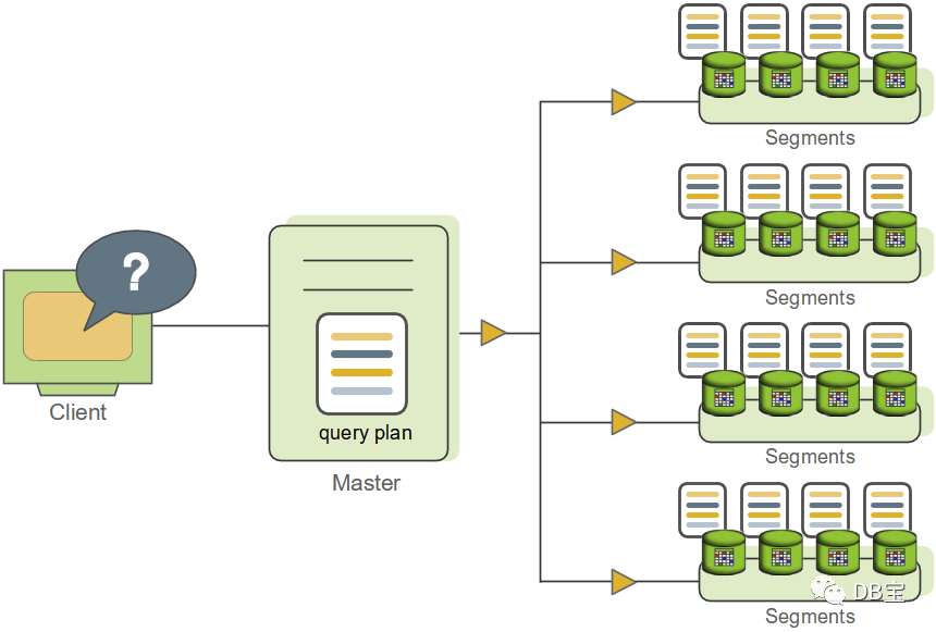 每个Segment接收一份查询计划的拷贝并且并行地根据计划工作。