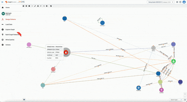 我们在GraphStudio™的“设计图模式”、“加载数据”和“探索图”页面中引入了拖放和快捷键支持,以提升用户的设计图schema体验。通过拖放功能,您可以轻松设计图schema,享受直观的操作体验。此外,我们还实现了常用的键盘快捷键,加快了编辑速度,节省您宝贵的时间和精力。