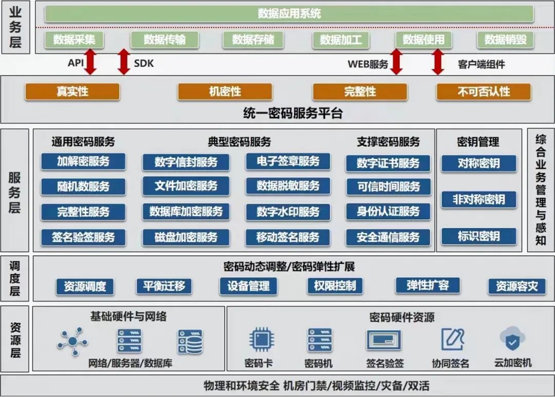 • 基于高性能密码产品、高速算法模式以及高效调度策略,对外提供密码资源服务、密码功能服务及密码业务服务能力。