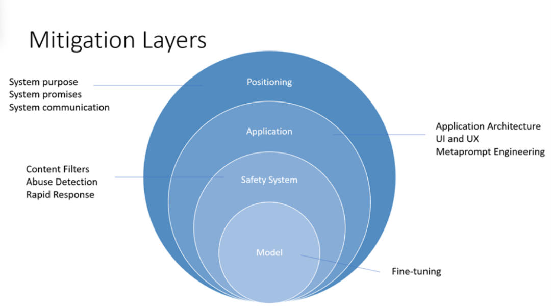 缓解大型语言模型可能带来的风险需要采取迭代的、分层的方法,包括实验和持续测量。我们建议使用微软的负责任的 AI 的最佳实践来制定缓解计划。