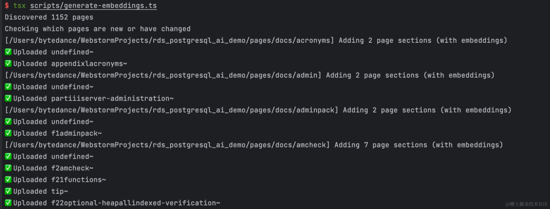运行脚本,生成文档 embedding 向量并插入数据库: