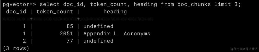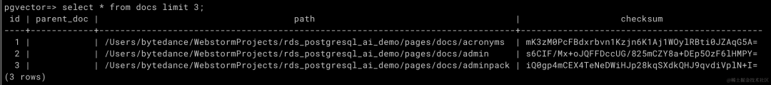 脚本运行后,我们查看下所构建的知识库。查询 docs 表: