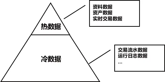 分层存储可以概括为将数据分为高频访问的热数据和低频访问的冷数据, 并分别存储在热数据层和冷数据层,以达到性能与成本的平衡。典型的交易系统中除了高频访问的资料数据、资产数据外,在交易过程中会产生大量的带时间戳的日志型记录,如交易流水数据、运行日志数据等,随着系统在网时间越长, 这类日志型记录会越来越多,最终整个系统的冗余数据变得异常庞大。这种情况在磁盘库上可能问题不太明显,但是在全内存态运行的数据库中就显得尤为棘手,毕竟内存的成本是相对高昂的,用内存去存储这类冗余数据显得不划算。