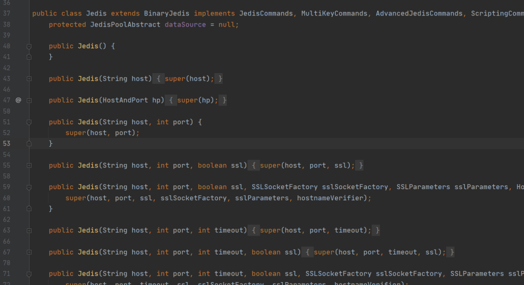 // JedisPool jedisPool = new JedisPool(jedisPoolConfig, ADDR, PORT, TIME_OUT, AUTH, DEFAULT_DATABASE);