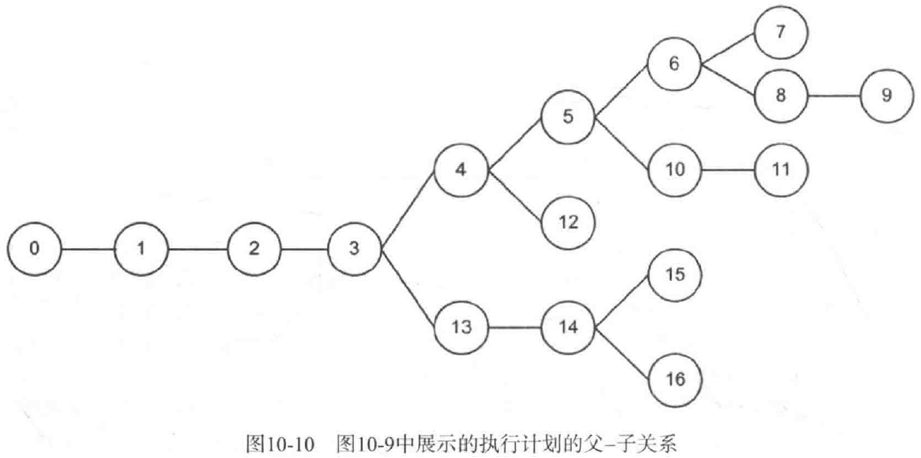 我们来看一下图10-9中的执行计划所执行的操作(图10-10展示了其父-子关系的图形表示)。我有意不提供用来生成它的SQL语句。对于我们的目的而言,你不需要关心SQL语句本身。换句话说,执行计划才是关键。