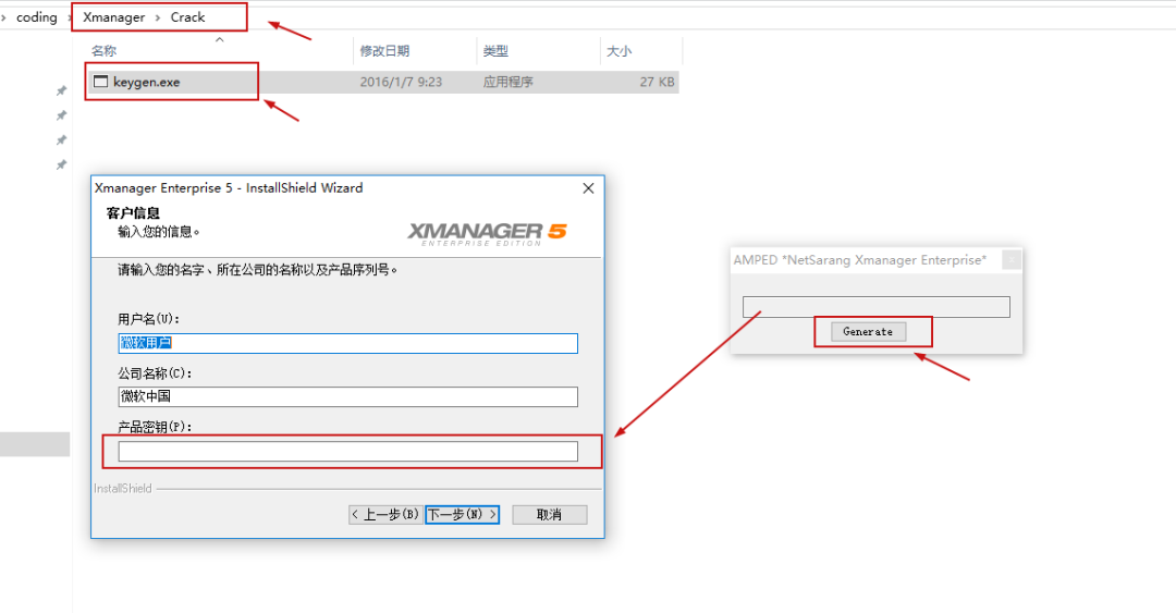 点开\Xmanager\Crack文件夹下有个keygen.exe软件,