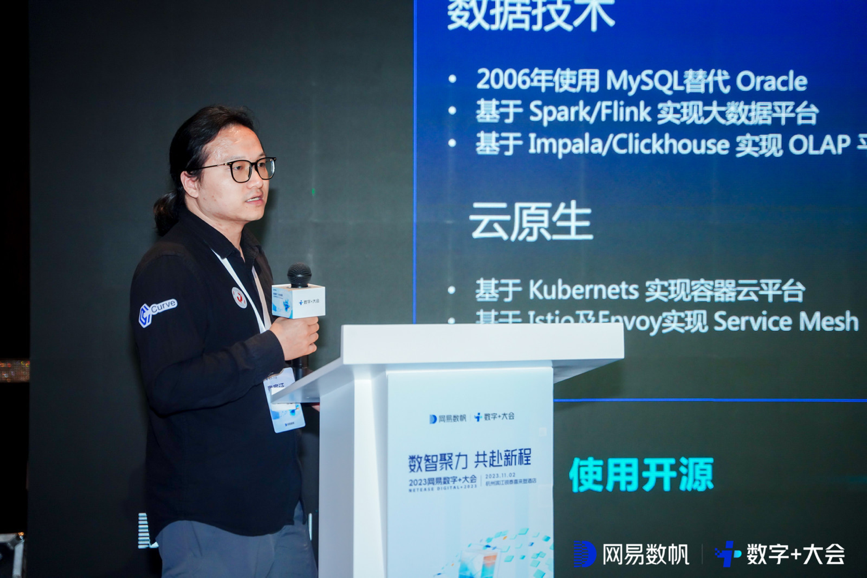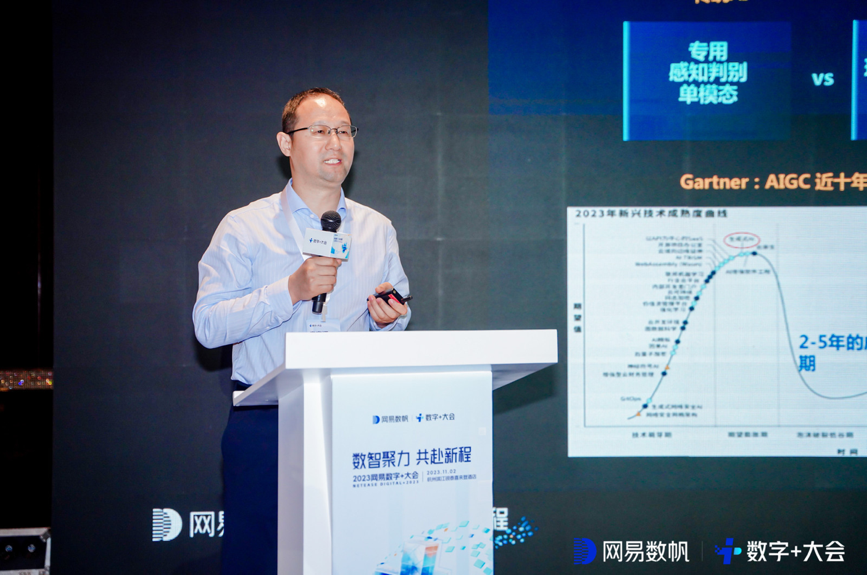 其中,网易数帆协同网易杭州研究院,全面解读了CCDA(云原生、CodeWave、大数据和AI)产品体系背后的创新土壤、孵化逻辑、研发故事和落地成果,以及投身开源社区建设的探索经验,并针对在杭研技术生态中做出突出贡献的企业和个人颁发了数智创新应用、共创卓越和技术贡献者等奖项,表明了引领创新、价值共创的态度和决心。网易杭州研究院技术委员会Core成员陈谔作开场致辞,重点分享了对于技术创新的见解。基于网易杭州研究院实践经验沉淀,陈谔表示,技术创新应该是基于对市场,对业务的洞察所做出的创新,有做挑战性的创新。如云原生领域的高性能、金融级高可用技术,低代码领域的NASL编程语言,这些创新在业界的独特竞争力就是明证。同时,技术创新还应投入开源开放的体系建设,积极拥抱开源社区,形成了真正有价值的沉淀,并把自己的产品开源贡献给社区,让技术的生命力更加长远。作为网易集团重点投入且唯一的研究院机构,网易杭州研究院被认定为“国家企业技术中心”,多年来始终坚持创新业务孵化、基础技术平台研发和前沿技术研究。会上,网易杭州研究院基础平台中心总监张晓龙介绍到,经过多年沉淀和探索,网易杭州研究院除了网易云音乐、严选等C端产品,还孵化出了网易数帆B端业务,包括云原生、低代码、大数据、人工智能四大产品线。其中,轻舟云原生平台、CodeWave智能开发平台、EasyData数据开发治理平台等创新产品,都是随着网易电商业务爆发式增长、大量经营管理系统开发需求、烟囱式数据架构等业务挑战孵化出来的,这些都成为了网易数帆以坚持探索、以创新推动技术突破的关键支撑。除此之外,系统稳定性提升、IT降本增效也成为网易杭州研究院当前创新工作的主题,包括了运维保障、基础设施、数据湖/Lakehouse、大模型与AIGC等“有价值、有挑战的事情”,既支撑网易业务创新,也促进网易数帆产品发展。云原生、大数据、AI创新加速;