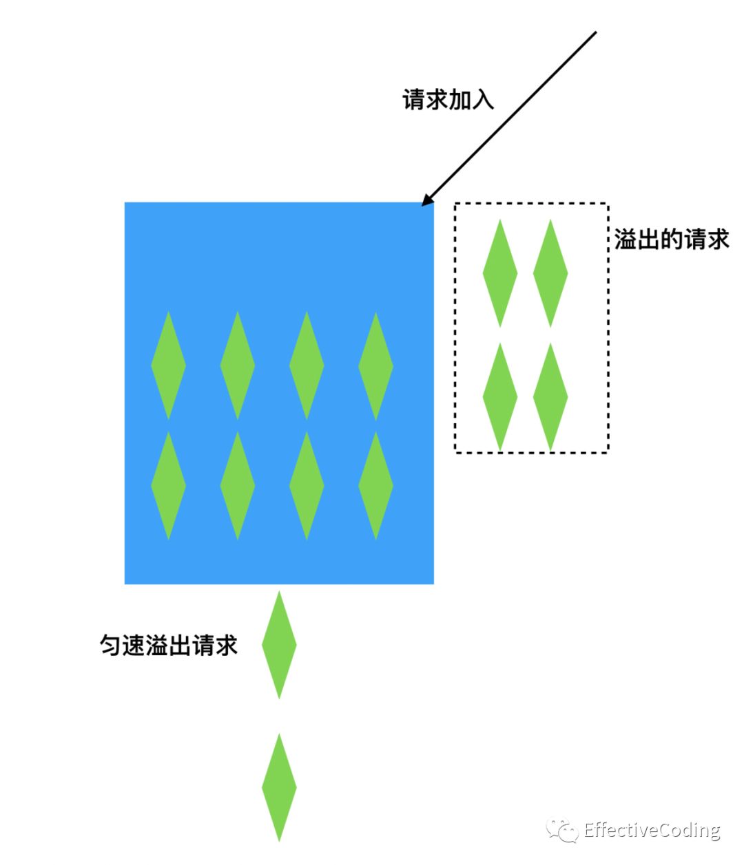 漏桶则是按照常量固定速率流出请求,流入请求速率任意,当流入的请求数累积到漏桶容量时,则新流入的请求被拒绝;