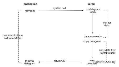 recvfrom ->[syscall -> wait -> ] return no data ready