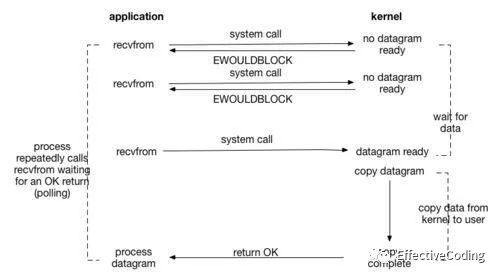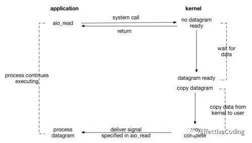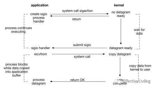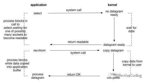 其中每个IO都是非阻塞IO,先使用poll/select 轮训IO句柄,如果有准备好的,开始第二阶段IO(阻塞读数据)