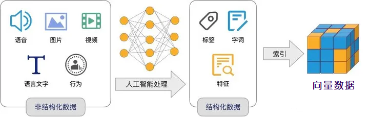 向量表示 向量数据库将复杂的数据类型转换为向量表示,使得高维数据能够以多维空间中的点的形式表示。向量数据库采用嵌入向量(embedding vector)技术,对非结构化数据(包括文本、图片、视频、音频等)进行特征抽象。数学上,嵌入向量是一个浮点数或二进制数的数组,即 N 维特征向量空间中的向量。 向量检索 向量数据库擅长在海量数据中根据向量表示搜索与给定查询相似的数据项。为了提高效率,向量库支持使用如欧氏距离、余弦相似度或曼哈顿距离等相似性度量来确定多维空间中数据点之间的接近程度,从而找到最相关和最相似的结果。 海量规模 向量数据库被设计成能够处理大规模的数据集,并且在数据集大小增长时能够保持高搜索精度和响应时间。此外,它们通常提供并行处理和分布式计算的机制,以满足不断增长的数据需求。 AI 支持 随着人工智能和机器学习应用的迅速增长,向量数据库的采用也在增加。将复杂数据转换为向量表示可以与这些算法无缝集成,从而获得规模化的有价值洞见和预测。