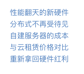 然而事情正在起变化,硬件重新变得有趣起来,而云厂商是没有办法把这部分红利永远掩藏遮盖下去 —— 聪明的人开始计算数字,勇敢的人已经采取行动。像马斯克和DHH这样的先锋已经充分认识到了这一点,从云上下来,脚踏实地 —— 直接产生千万美元的财务效益,并且还有性能上的回报,运营也变得更加自主独立。越来越多的人会同样意识到这一点,追随先驱者做出明智的选择,拿回属于自己的硬件红利。