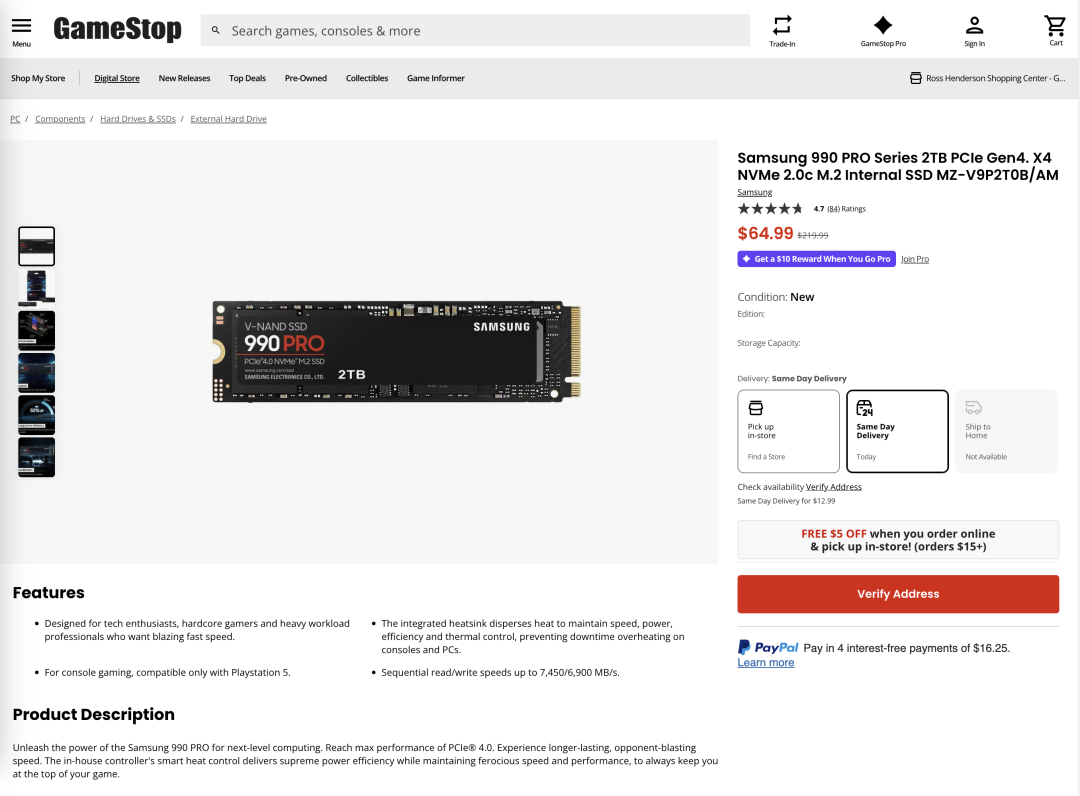 请注意,这里的价格并没有包括百倍溢价的 EBS 云盘存储。在《云盘是不是杀猪盘》中,我们已经详细对比过企业级 SSD 和等效云盘的成本了。这里我们可以给出两个当下更新后的参考值,DHH 采购的 12TB 企业级 NVMe SSD(以质保五年算)TB·月成本为 24 元,而 GameStop 上零售的三星消费级 SSD 990Pro的TB·月价格更是能达到惊人的 6.6 元 …。