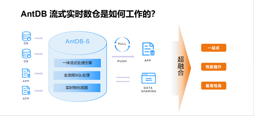 亚信安慧AntDB做了大量从零开始的创新性探索与研究,于2022年底推出AntDB-S实时实时数仓,彻底将流式计算与传统交易、分析型数据存储进行了融合,让用户可以在数据库引擎内,通过标准SQL自由定义数据的结构以及实时处理逻辑。技术堆栈简化:在实时流事件的处理上,AntDB流式处理一体引擎将大量的实时数据处理做到数仓内部,更进一步向通用事务靠拢。标准SQL定义:传统流处理方式对于SQL 的处理很弱,还要写大量业务代码,而AntDB-S可以通过统一SQL语句进行处理,流的使用上更便捷。统一数据接口:支持流批模式的转换,AntDB统一超融架构,实现了对外的接口统一,数据的采集与处理无需分开,流批都用SQL 即可全部搞定。支持完整事务处理:传统流处理过程中不支持数据的修改,AntDB-S支持流处理中对数据的修改和事务操作。实时结果更准确:通过分布式事务的ACID特性,解决实时流数据处理中,数据容灾和一致性的问题,可以精确判断数据故障点,完成流事件的矫正计算和重统计。由上图可以看出,流数据库是把流处理功能融合进AntDB-T的SQL引擎中;把流数据的存储融合进AntDB-T的存储引擎;把流处理的进程体系结构融合进AntDB-T的进程体系结构中。(2)学习和维护成本低,只需掌握数据库的使用和维护即可。(3)完全用SQL操作所有功能,使用简单方便。SQL是被实践证明了的最好的数据处理语言,能够快速响应业务的复杂多变性。(4)流数据处理支持数据UPDATE和DELETE、事务ACID、且可以流表JOIN。AntDB数据库始于2008年,在运营商的核心系统上,为全国24个省份的10亿多用户提供在线服务,具备高性能、弹性扩展、高可靠等产品特性,峰值每秒可处理百万笔通信核心交易,保障系统持续稳定运行近十年,并在通信、金融、交通、能源、物联网等行业成功商用落地。 最后修改时间:2023-11-21 11:24:25