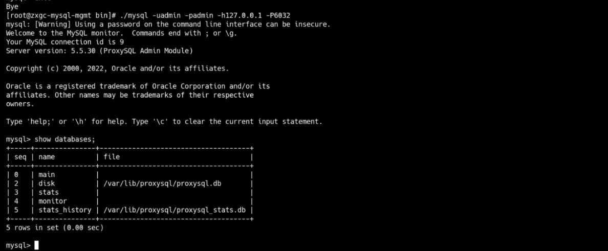 mysql -uproxysql -pproxysql@1025 -h127.0.0.1 -P6033