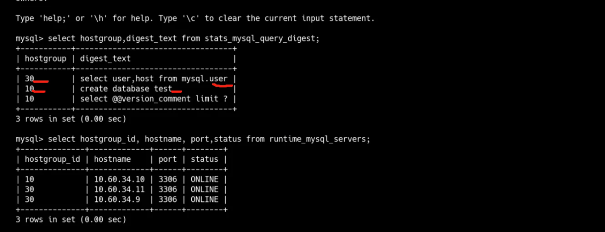 select hostgroup,digest_text from stats_mysql_query_digest;