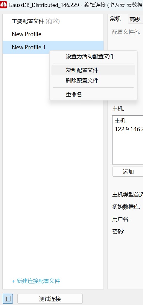 右键单击“我的连接”中的一个GaussDB连接,点击“编辑连接”,可对连接信息进行修改。