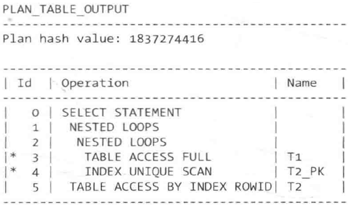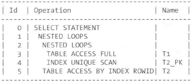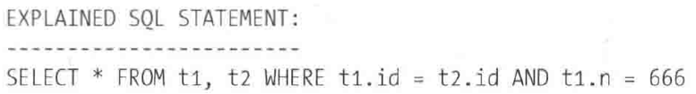 EXPLAIN PLAN FOR SELECT * FROM t1, t2 WHERE