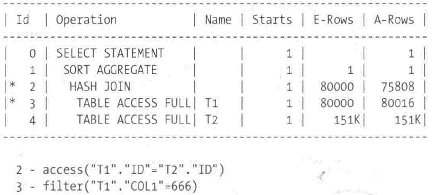 直接评价一个SQL语句本身的成本在实践中是不可行的。检查查询优化器执行的其他估算则相对容易得多,这种方式的成本估算基于由一个操作返回的行数(基数)。检查估算的基数十分容易,因为你可以使用dbms_xplan包的display_cursor函数,