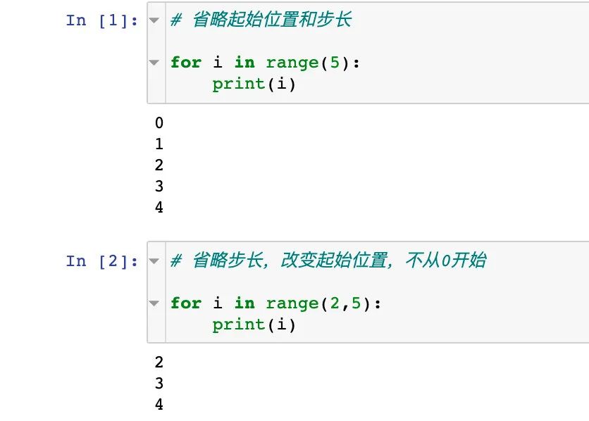下面多个例子中的range(m,n,s)函数表示的是取指定数值区间的数值作为迭代器: