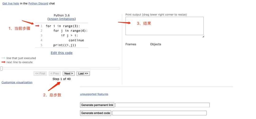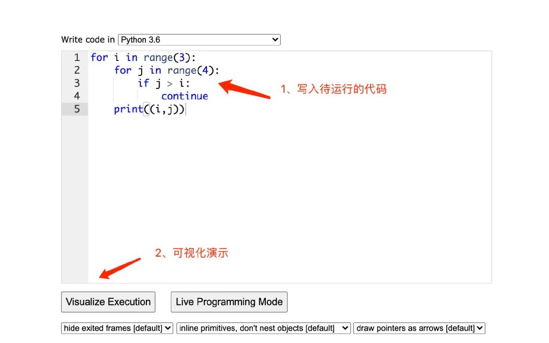 最后送给大家一个经典的神器网站:https://pythontutor.com/visualize.html#mode=edit,这个网站能够演示我们代码每一步的运行。