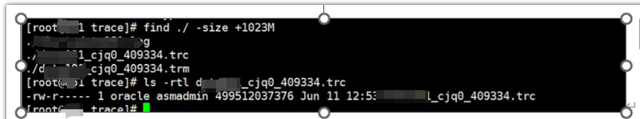 找出文件根目录下面1G以上的文件,发现 _cjq0_409334 trc 大小为400多G