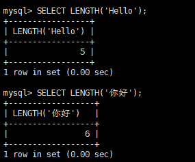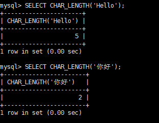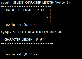 SELECT CHARACTER_LENGTH('Hello'); -- 返回 5SELECT CHARACTER_LENGTH('你好'); -- 返回 2