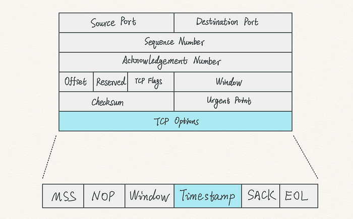 接收方读取时间戳B并将其与先前的时间戳E进行比较,以确认这是一次重传。否则,时间戳应该大于E。