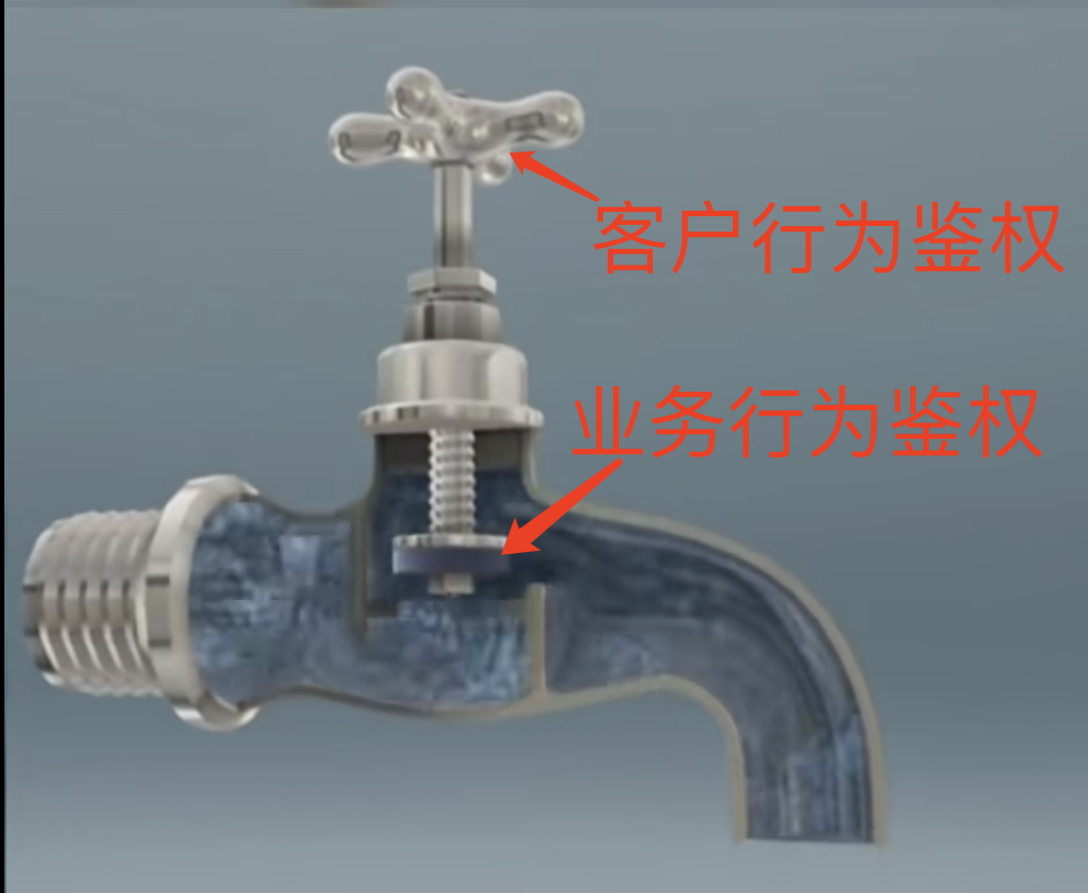 如果水龙头是阀门、管道这类业务系统坏了,每一滴水珠流过水龙头时,都会受到影响,打不开、流不尽、关不严的故障都会出现。这等同于本文中的“业务行为鉴权系统”出现故障。